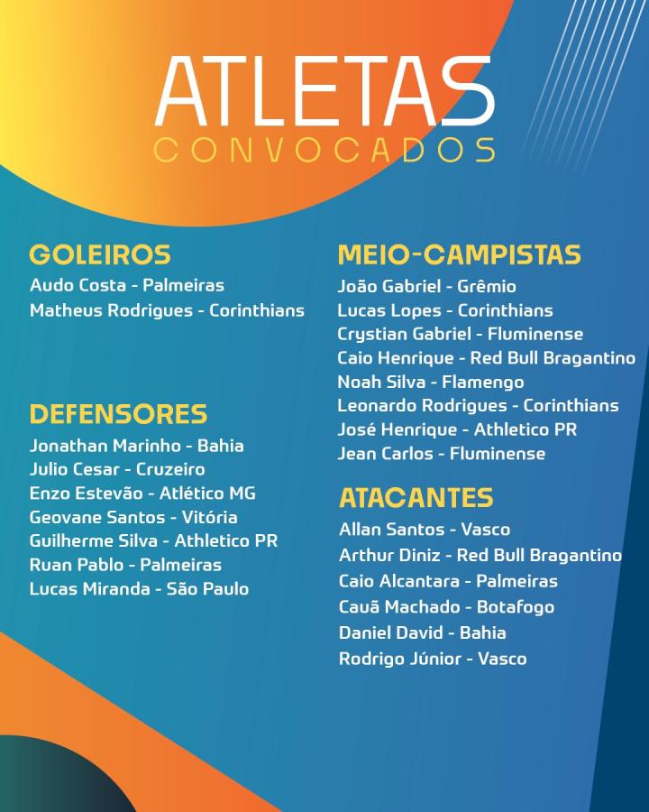 23名球員來自14家本土俱樂部,均為10級適齡球員,其中帕爾梅拉斯和科林蒂安各貢獻(xiàn)3人,并列最多。